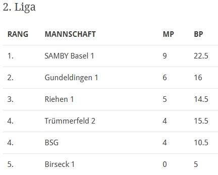 3. Februar 2026, 5, Runde: Birseck – SAMBY Basel 1 0 – 6 FF